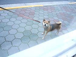 窓の外では散歩中の犬くんが、こちらをじっと見ていました。何が気になったのだろう?