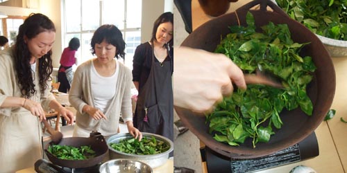 椿野さんのご実家で摘まれたばかりの青々としたお茶の葉を、