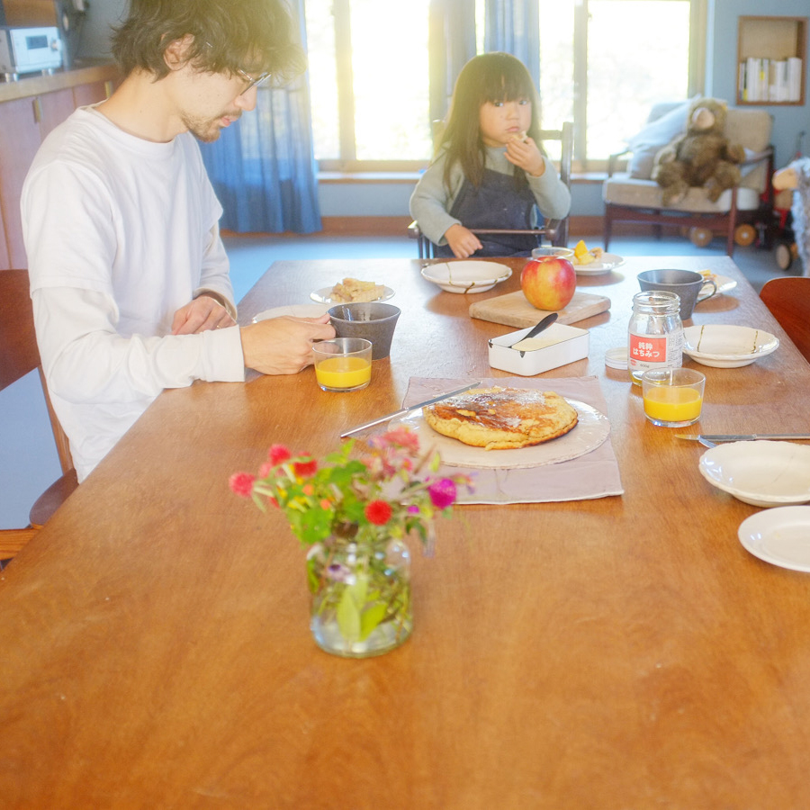 久々に家族みんなでゆっくり朝ごはんを食べる休日。どでかいパンケーキを焼いて、4枚にカットしてわけた。お日様があたたかくて、ドアを開け放って空気を入れ替えたり、布団を干したりしていたら、近所のイーさん・知ちゃん夫婦が筑波に住んでいるという友人夫妻を連れてふらりと来てくれた。わたしたちが作っている『家族と一年誌 家族』という雑誌を読んでくれたという、そのご夫妻。「今の世の中は、個人的な事柄がどんどん蔑ろにされているように感じていて、でもこの『家族』って雑誌はとても個人的なことを大事に作っている感じがして、ぐっときたんです」と、感想をくれた。『家族』も買ってくれた。片付け途中の我が家に入ってもらって、みんなでお茶を飲んで話をした。なんだかとても嬉しい土曜日の午前だった。<< はじめに 連載もくじ >>
