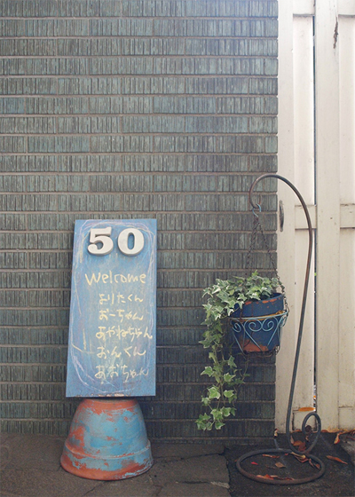 来客の際には、このボードが我が家の目印に、